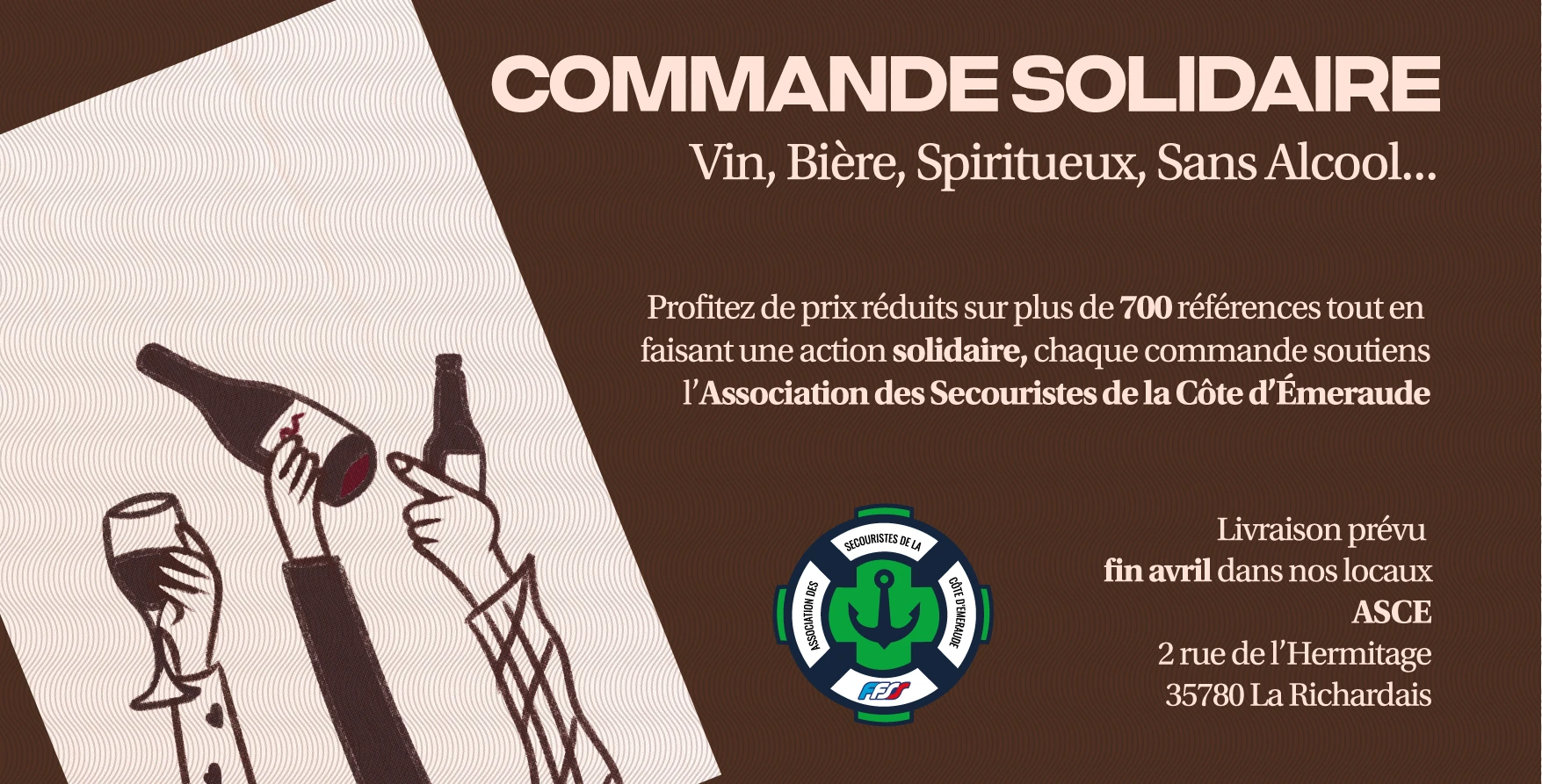 Bonjour à toutes et à tous, L’ASCE organise une COMMANDE SOLIDAIRE de vins, bières, spiritueux et boissons sans alcool